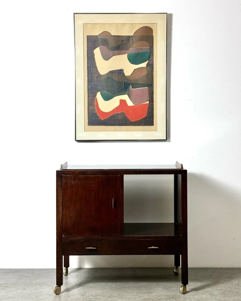 We ship worldwide…Shop online for complimentary US delivery Inquire for international shipping quotes Categories: All seating lighting storage objects surfaces floors walls Shop All seating lighting storage objects surfaces floors walls Edward Wormley for Dunbar Bar Cart Server Cabinet 1950's $3,400.00 Aldo Londi Rimini Blue Ceramic Boar Sculpture Bitossi Italy 1960s $1,200.00 Black Ceramic Fornasetti Style Perpetual Face Vase by TMS 2005 $700.00 Buddha Head White Ceramic Perpetual Face Vase by TMS 2006 $750.00 Jens Quistgaard Fireplace Tool Set for Dansk in Iron and Brass 1960's $4,500.00 Vintage Japanese Modernist Bamboo & Washi Paper Table Lamp $700.00 Saarinen Swanson Group Modernist Bronze Andirons 1940's $5,000.00 Japanese Mosaic Abstract Landscape Framed Panel Wall Sculpture 1970s $1,800.00 Pair of Japanese Samurai Saddle Leather Tables with Gold Checkerboard Motif $7,000.00 Abstract Modernist Granite Sculpture, Organic Hand Carved Stone Relief 1970s $3,800.00 TH Robsjohn Gibbings Chest of Drawers with Brass Legs and Cane Pulls 1950s $6,500.00 Original Jesus Mariano Leuus Surrealist Figural Oil Painting Mexico 1977 $1,200.00 Postmodern Memphis Style Abstract Painted Wood Wall Sculpture by John Kiritsis 1980s $1,450.00 ON HOLD 1950s Modernist Architectural Wood Slat Bench $2,900.00 Brutalist Abstract Steel and Brass Cube Sculpture Mid Century Modern 1960's $1,450.00 Mid Century Mexican Hand Carved Wood and Leather Webbed Chair 1960s $3,500.00 Mid Century Studio Pottery Ceramic Vessel Sculpture with Jute Rope 1970s $750.00 Original Surrealist Mona Lisa Painted Mannequin Torso Sculpture 1970s $1,400.00 Betty Davenport Ford Modernist Ceramic Deer Sculpture 1950s $3,500.00 Borge Mogensen Model 211 Sofa in Oak and Teak for Fredericia Stolefabrik Denmark 1950s $4,500.00 Mid Century Modern Colorful Pinwheel Dining Table by Peter Pepper Products 1960s $4,200.00 1st Generation George Nelson Coconut Chair for Herman Miller 1950s $4,000.00 49x37 Large Signed Mid Century Modern Abstract Original Painting 1960s $1,400.00 Original Curtis Jere Chrome Raindrops Wall Mirror Sculpture 1960s $2,900.00 Carl Auböck II Fondue Pot and Burner Set in Copper and Brass 1950s $985.00 David Gil Black Architectural Ceramic Planter for Bennington Pottery 1960s $675.00 Sold Out Pair of Paul McCobb Rare Lounge Chairs by Custom Craft for Directional Modern 1950s $12,000.00 Mid Century Modern Mosaic and Ceramic Tree Relief Wall Sculpture Evelyn Ackerman Style 1960s $1,650.00 Vintage Leather and Chrome Log Holder or Magazine Rack Alessandro Albrizzi Italy 1960s $1,100.00 Vintage Lagardo Tackett Architectural Pottery Double Cone Hourglass Planter Bisque Ceramic 1960s $2,500.00 Mid Century Organic Modern Carved Wood Abstract Female Torso Sculpture 1960s $1,485.00 Sold Out Large Vintage Paolo Soleri Brutalist Bronze Sculptural Wind Bell Arcosanti 1970s $3,000.00 Mid Century Geometric Wood Puzzle Sculpture Artist Signed 1979 $750.00 Sold Out Gene Sherer Studio Craft Mixed Wood Fish Jewelry Box Cabinet 1984 $1,600.00 Mid Century Modernist Sculptural Bronze Organic Bell Signed Francisco 1977 $485.00 Vintage Studio Craft Sculptural Organic Modern Chair in Walnut Signed and Dated 1993 $2,900.00 61x51 Original Abstract Landscape Painting by Ray Frost Fleming 1970s $4,000.00 Roger Sloan Sculptural Turned Walnut Weepot Bud Vase 1970s $450.00 Brutalist Brass Candleholder Attributed to Giuseppe Gallo 1960s $385.00 Sold Out Mid Century Jack Arnold Modernist Abstract BIomorphic Bronze Sculpture on Marble Base 1970s $2,200.00 Vintage Large Mid Century Modern Verdigris Ceramic Japanese Haniwa Style Horse Sculpture 1960s $1,585.00 Vintage Studio Pottery Ostrich Lidded Vessel Sculpture by John Wenzel 1970s $975.00 Sold Out Vintage Bill Curry Tulip Table Lamp with Amber Glass Globe Shade | Design Line 1970s $1,200.00 Carl Aubock Rare Brass Corkscrew Cup Model 3710 Austria 1940s $850.00 Charles and Ray Eames Tandem Orange Fiberglass Shell Chair Bench Herman Miller 1960s $2,900.00 Vintage Mid Century Mexican Modern Handcrafted Rectangular Patinated Hammered Copper Lidded Box 1960s $600.00 Set of 3 Mid Century Mexican Modernist Hammered Copper Assymetrical Round Orb Bowl Vessels Organic Design 1960s $1,285.00 Vintage Mid Century Modern Brutalist Abstract Nude Female Torso Sculpture 1960s $750.00 Sold Out Vintage Surrealist Sun Face Starburst Brass Brutalist Wall Sculpture by Emaus Mexico 1970s $1,200.00 Sold Out ON HOLD Vintage Mid Century Modern John Glick Studio Pottery Glazed Ceramic Stoneware Floor Lamp 1960's $2,800.00 Sold Out Abstract Steel Kinetic Stabile Floor Sculpture by Terry Lee Dill 2001 $6,000.00 Stig Lindberg Unique Ceramic Cylindrical Bowl Planter in Oxblood Glaze for Gustavsberg 1960s $2,500.00 1950's American Modernist Iron Hairpin Z Frame Lounge Chair and Ottoman in Cream Boucle $4,800.00 Lawrence Peabody Sculptural Rocking Lounge Chair in Gray Mohair 1960s $4,000.00 Pair of Rare Side Tables by Gilbert Rohde for Herman Miller in East Indian Laurel & Steel 1930s $6,700.00 Mid Century Danish Modern Arne Vodder Teak Credenza Highboard Cabinet Denmark 1960s $6,500.00 ON HOLD 1950s Dual Shade Green Sculptural Table or Desk Lamp in the style of Jean Royère $2,900.00 Sold Out Post Modern Memphis Amber Glass Animal Motif Bowl by Susani & Vidal for Sottsass Associati circa 1990s $1,450.00 52 x 43 Christopher Manzo Contemporary Post Modern Abstract Colorful Graffiti Style Acrylic Painting $4,500.00 Large Geometric Abstract Modernist Hand Carved Wooden Bird Floor Sculpture 1980s $3,500.00 1950's Brass Sputnik Four Arm Candelabra Table Lamp Tommi Parzinger Style $1,400.00 Glen Michaels Abstract Brutalist Bronze Table Top Sculpture 1970s $2,400.00 Henry Glass Swivel Lounge Chair in White Boucle with Brass Legs 1950s $6,500.00 Vintage Mid Century Modern Folk Art Ceramic Birds Reclaimed Wood Plank Wall Hanging Sculpture 1970s $485.00 Sold Out Vintage T.H. Robsjohn Gibbings Sculpted Walnut Square Wall Mirror for Widdicomb 1950s $2,
